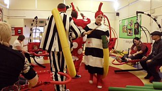 Your donations have helped BBC Children in Need’s grant pays for two of the performers and a development researcher at Oily Cart. We also fund several organisations like the Pod Charitable Trust, the Welsh National Opera’s Singing Doctors, the W5 play workers and Sinfonietta that visit children in hospital when they are feeling scared and vulnerable. So thank you for helping to make disadvantaged children happy.