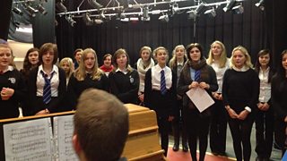 The BBC CiN choir in Scotland's senior girls in rehearsal