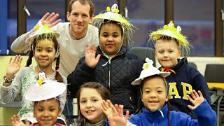 John Stanghon and some of the children modelling their Easter Bonnets