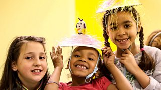 The children prepare for Easter by making bonnets.