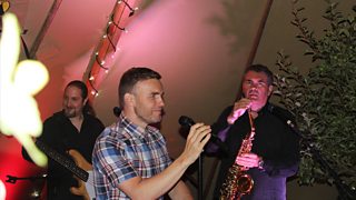 Gary Barlow performs at Chris Evans' pub for the Dine & Disco evening