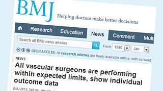 The RCS issued a reassuring message with the data, proclaiming that "all surgeons are performing within the range expected". This was widely reported as part of the coverage - and it was how the British Medical Journal (BMJ) headlined its story (above). But was that really true of all the nearly 500 vascular consultants involved?