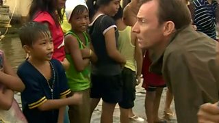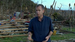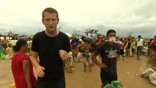 There has been some extraordinary journalism and incredibly moving stories on both tv and radio from correspondents Jon Donnison, Jonathan Head, Rupert Wingfield-Hayes (above, with children in a Tacloban food queue), Alastair Leithhead, Andrew Harding (pictured below, reporting from a remote coastal village), George Alagiah and others.