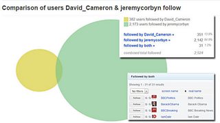 Many third party websites display content from social networks in imaginative, useful formats. Followerwonk, for example, lets you compare the followers and people followed by two Twitter accounts. This might be easier than saving two sets of follower lists.