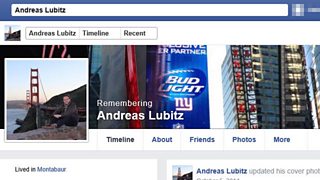 Andreas Lubitz's memorialised Facebook page with my Facebook user name pixelated to avoid identification.