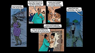 Back in London I worked with my Focus on Africacollaborators to refine the script and started working with artist Tayo Fatunla, who is from Nigeria but lives in the UK. It was important for this project to have as much West African representation as possible. So, with the script approved by the contributors in Bissau and the artist from Nigeria, we were happy that the project had a good balance through the story and artwork.