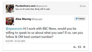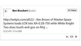 So, scouring Twitter, I can find Doug Messier tweeting from @spacecom
