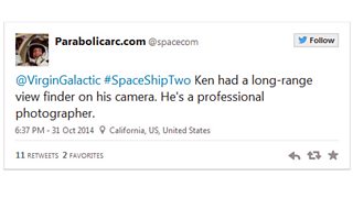 Then, going through his timeline, I saw he mentioned Ken in telling Virgin Galactic about what they witnessed: