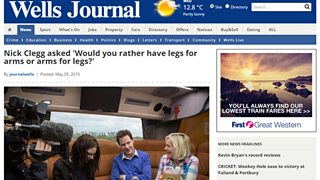 My favourite piece - in amongst all the serious seat-by-seat analysis, the questioning of party leaders and the useful background information - was by the Wells Journal: Nick Clegg asked “Would you rather have legs for arms or arms for legs?”