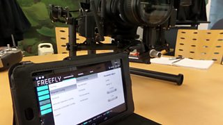 It’s the Freefly Mōvi M10 - a motorised rig which fits around the Canon C300 camera that a lot of BBC producer/directors are using.