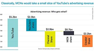 By the time YouTube and the content creator have taken their shares, the MCN is left with a relatively small proportion of the ad revenue ($0.7b out of $5.2b or about 13% according to the above figures).