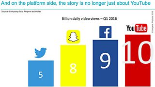But the media establishment is not necessarily being shut out. While ‘social video’ typically comes from the big US tech companies, in the UK, both broadcasters (ITV, Channel Four and UKTV) and the press (Daily Mail, the Sun, the Guardian) are also big players in online video.