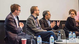 Panellists Paul Bradshaw, Daniel Noy and Mark Frankel are joined by Alia Lamaadar of Slack
