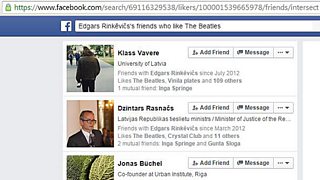 For example, the foreign minister of Latvia is Edgars Rinkēvičs. A Facebook Graph search for his friends who like the Beatles would look like this: