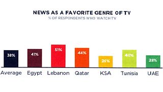 But it’s not all comedy, drama and soap operas. Data from Northwestern has identified news as the most popular entertainment genre in Qatar (44%, versus 33% for comedy) and in Lebanon (51% to 43%).