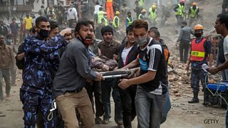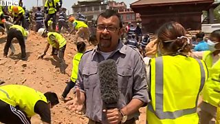 Sanjoy Mazumda reporting on the rescue effort in Kathmandu for BBC News