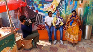 Filming at the Sheroes café in Agra, India