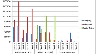 There are many free tools available to help make interesting graphics tell important stories. But sometimes you may just use something simple such as MS Excel’s built-in graphic-maker to grab the eye and pique interest in a story. Take this one: the summary of donations to UK political parties at the 2010 general election, which makes a good spreadsheet to practise on. If you are looking at the table of what kind of donors (businesses, individuals, trade unions) gave and how much money to each party in each week of the 2010 campaign, there’s nothing quite as clear as the graph Excel creates.