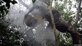 “He was extraordinarily fit, often running through the jungle in search of the honey cones, shouting with delight every time one was found. When that happens, there's a flurry of activity. Torches are prepared from the abundance of thick vegetation as the smoke irritates the bees and makes them fly away.”