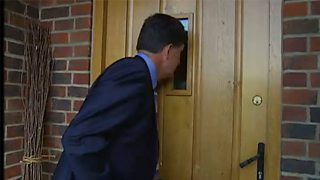 Thomson shouts to Kelvin through his front door and then waits outside his house until Kelvin emerges to get into his car, when Thomson tries to question him from a spot which stops Kelvin from shutting the car door.
