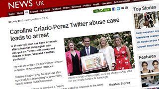 Caroline Criado-Perez Twitter arrest, from BBC website