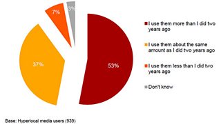 Nonetheless, hyperlocal media is a small but growing part of the UK’s local media landscape. The number of known sites rose from 432 in May 2012 (as reported in the Ofcom CMR 2012) to 633 by February 2013, and consumption levels are growing too. As the British media monitoring company Kantar has observed: “Just over one half of hyperlocal media users use hyperlocal media more than they did two years ago."