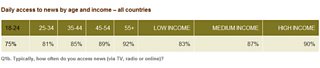 The world increasingly divides into those who actively seek out the news and those who skim or even avoid it. When it comes to news consumption, we saw in our Future of News work that the information gap between younger people, poorer people and some ethnic minority groups, on the one hand, and older people, richer people and some groups of white people, on the other, is widening.
