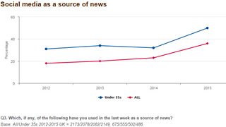 Audiences are increasingly getting news via social media. In the UK, the percentage of those using social media as a source of news has risen significantly in the last year - up from 23% to 36%.