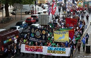 This photo of demonstrating teachers was cropped at 448 pixels for a story on the BBC News website and works reasonably well: