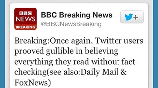 Nobody, it seemed, was bothering to verify the tweets. A couple of hours later the account had attracted nearly 150,000 followers - including a huge number of journalists. It was a classic lesson in look before you leap - or retweet - which I collected for training purposes.