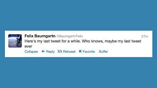 I clicked on ‘Felix’s’ profile and found that his 19 tweets had already garnered more than 74,000 followers and this ‘amazing’ tweet had been retweeted more than 21,000 times. Yet a quick look at @BaumgartnFelix’s profile showed that it was clearly marked as a parody.
