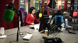 Najiba Feroz at the microphone in the BBC's New Broadcasting House