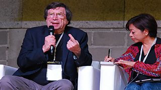 Brazilian supreme court president Joaquim Barbosa takes questions from the floor
