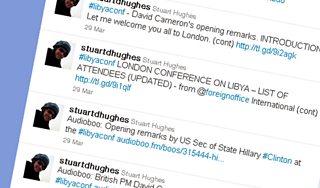 So, when dozens of foreign ministers gathered at Lancaster House this week for the London conference on Libya, I decided to try an experiment. Armed with a Macbook, digital stills and video cameras, recording equipment and a wifi connection, I provided a steady stream of content through the day via Twitter (below).