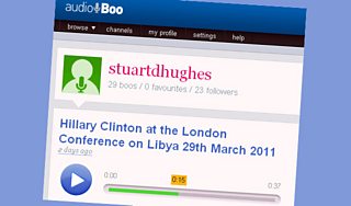 Official Foreign Office press releases and communiqués were cut and pasted onto Twitlonger. Using a Marantz digital audio recorder plugged into the conference pool feed and Adobe Audition for Mac, I was able to 'top and tail' press conferences and statements from the likes of David Cameron and Hillary Clinton (below) and post them as Audioboos within seconds of them finishing. The boffins at Audioboo spotted what I was doing and kindly allowed me to upload files that were longer than the usual five-minute limit. This meant I could upload press conferences in their entirety.