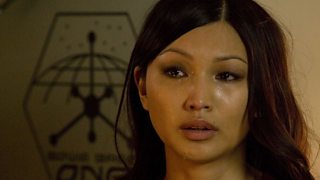 The mighty Tom Baker (the Fourth Doctor) left Doctor Who in 1981 and the following year played Sherlock in The Hound of the Baskervilles. Other actors who’ve played Holmes include the brilliant Nicholas Briggs (the ‘voice of the monsters’), Richard Hurndall (who played the First Doctor in The Five Doctors) and Richard E. Grant (Doctor Simeon). Gemma Chan (Mia, pictured below in The Waters of Mars) starred in the second episode of Sherlock, Caroline John (70s companion Liz Shaw) appeared in Tom Baker’s Hound and Frances Barbour (Kovarian) was fabulous as Madame Schirmer in the movie, Mr Holmes!