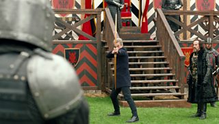 In Robot of Sherwood, the Twelfth Doctor, fuelled by bravado, cut in on an archery contest between the Sheriff of Nottingham and Robin Hood. After the Doctor ‘won’, he and Robin continued to engage in a game of one-upmanship, with both archers demonstrating immense skill before they were arrested by the Sheriff’s robotic guards.