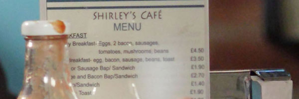 Hmm... not much on the menu if you're a vegetarian. Most likely, veggies can have a slice of toast and a box round the chops for being so bloomin' picky, from our beloved cafe proprietor. Think I'll have the sausage bap.