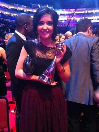 The actress was clearly thrilled as she collected her trophy at the star studded event in London tonight.