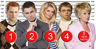 Only one week of voting left and our top 4 haven't moved. Bradley's still your top suspect (always the quiet ones...), but new entry Peggy Mitchell makes a surprise entry into the Top 5. Will she work her way up the suspect board by close of play next Thursday? You decide...