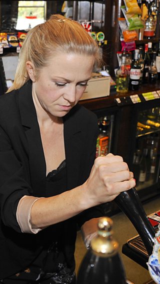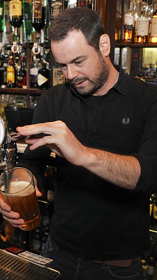 Doesn't Danny Dyer (Mick Carter) look like a natural pint puller! Is that spare one for us, Danny?