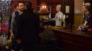 An angry Mick tells Dean to leave but Dean insists on staying despite Shirley’s pleas for him to go outside. How will Mick react and why is Shirley so desperate to get him out of the pub?