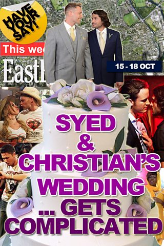 This week on EastEnders. Wedding bells ring.... but will both grooms make it to the altar?