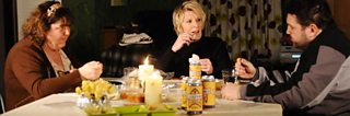 Of course, there's a whole lot more lovin' going on between Heather and Andrew, even if Shirley's in danger of accidentally messing up Andrew's plans. Things certainly look tense over dinner. Perhaps Andrew's seeming determination to build a pyramid out of lager cans between courses is the root of the problem?