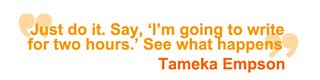 In order to get noticed, you need PROOF that you're worth noticing. If you're a writer, you need ideas, scripts. If you're an actor, hone your craft, work, get better, get better again. Talk to other actors, talk to other writers, make mistakes, learn from your mistakes. But no excuses. Like Tameka says: "Just do it. Sit down. Write it. Say, I'm going to write for 2 hours and see what happens."