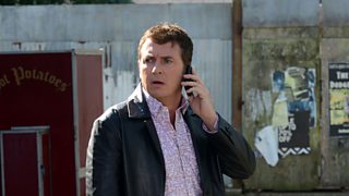 With the cigarette burning in the bin, Alfie heads over to Phils to play a bit of poker. However, his game is cut short when he discovers someone is still in the house that he's just set fire to!