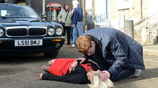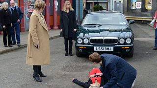 Photo spoiler: Lola takes a knock Thursday 10 April 2014, 23:00 EastEnders News TeamCommentsA shaken Ronnie jumps out of her car to find Lola lying motionless on the floor. Jay runs over to help, but will she be okay? And what on Earth happened!?This episode can be seen on Friday 11th April.