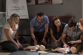 Janine and Michael attend a post-natal class which is pretty hands-on! Michael finds it all a bit much - is he realising that fatherhood isn't for him? Bit late now Mr Moon!