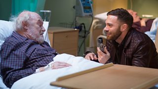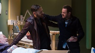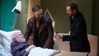 Family feud at Stan's bedside Saturday 4 April 2015, 0:00 EastEnders News TeamCommentsAs Stan’s condition continues to deteriorate, Dean visits his grandfather - with a cheeky tipple to help ease the pain. Their reunion is short-lived, however, when a livid Mick arrives.Find out what happens next on Easter Monday at 8pm, BBC One.