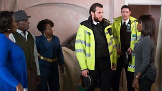 When Jordan tries to leave Walford, his past catches up with him and he's attacked by a group of men. Just as Claudette, Patrick and Kim try to cheer Denise up, the police arrive with the news that Jordan was taken to hospital - but has discharged himself.